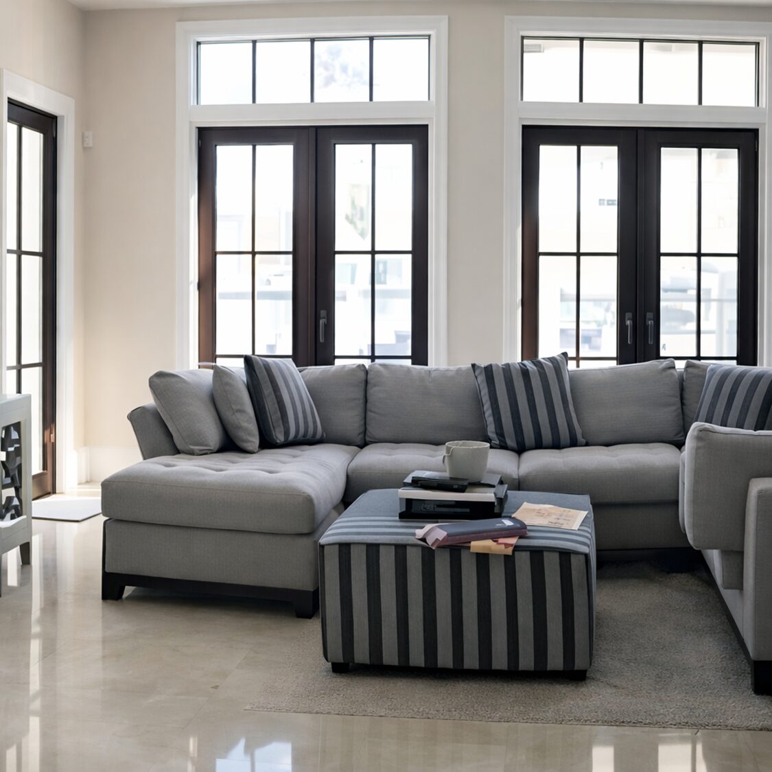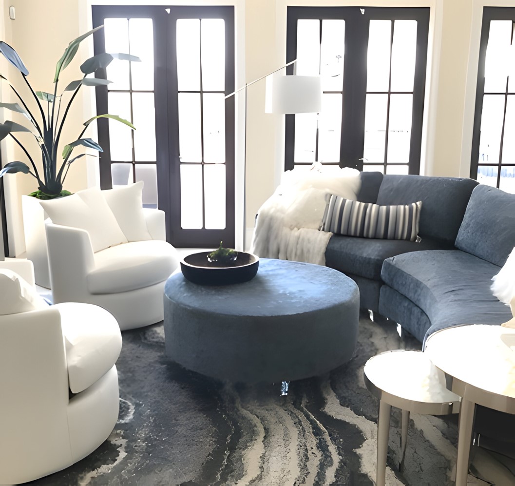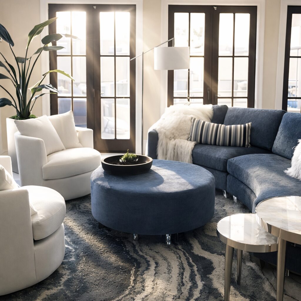From traditional and visually busy to open and cohesive. A custom U-shaped sectional, layered lighting, and sculptural details redefine this living space with comfort and flow.