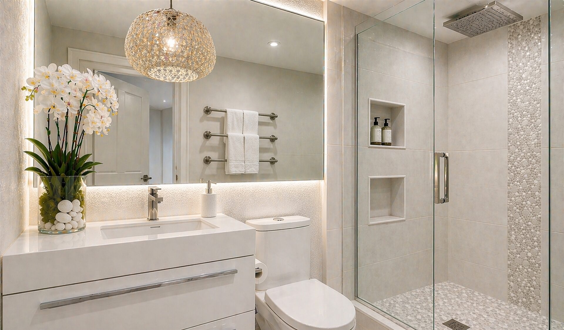From outdated and utilitarian to a serene, spa-inspired retreat. Thoughtful materials, soft lighting, and clean modern detailing transform the space into a calming, functional environment designed for comfort and everyday luxury.